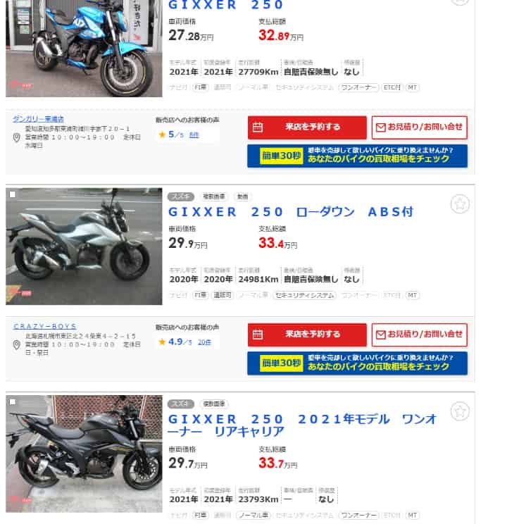 スズキのバイクは価格が安いことが特徴ではありますが、市場価格に対して極度に安い価格設定となっている車両には注意が必要です。